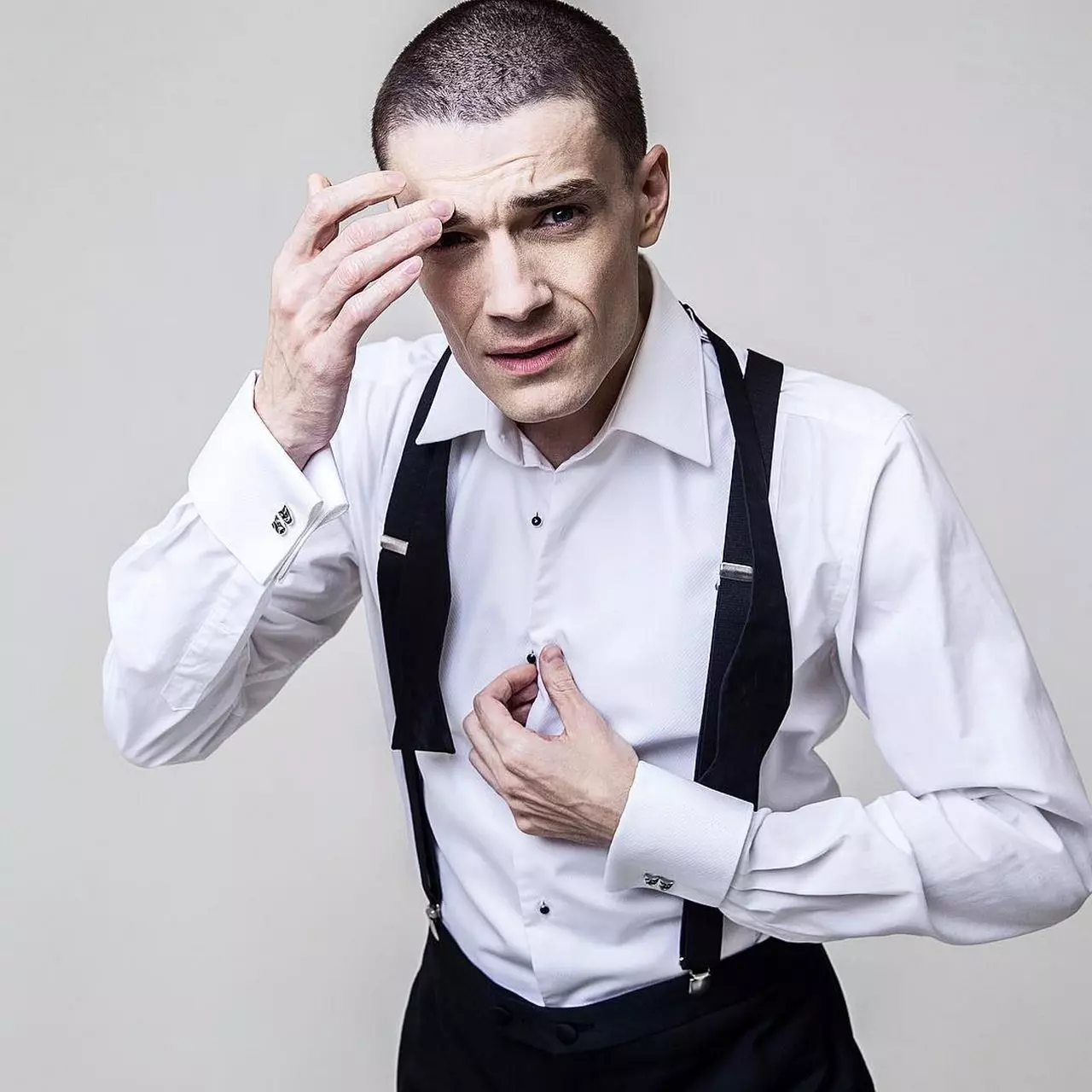Он делает специальные упражнения для поддержания вот такой астеничной формы. Иные дни он вообще ничего не ест, а пьет только воду. Еще Рубцов рассказывает, что худеть Максим начал для роли Вронского в «Карениной», потому что тот, согласно описанию в романе, был худощавым. Про короткую же стрижку товарищ по сцене говорит, что Матвеев подстригся для военного фильма, в котором сейчас снимается. Рубцов опровергает, как и Максим, подозрение в болезненности этой худобы.