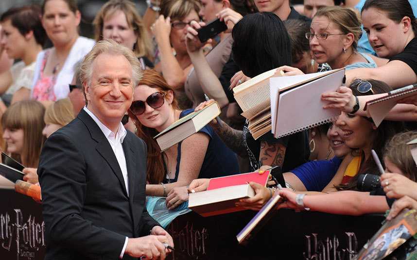 Роль профессора Северуса Снегга в фильмах о Гарри Поттере принесла Рикману целую армию поклонников. Однажды актёра спросили, как часто его узнают на улицах, и он ответил: «В Англии меня нечасто узнают, потому что все здесь смотрят себе под ноги. Это облегчение. Честно говоря, я никогда этого и не ожидал, потому что тот длинный черный парик – это прекрасная маскировка».