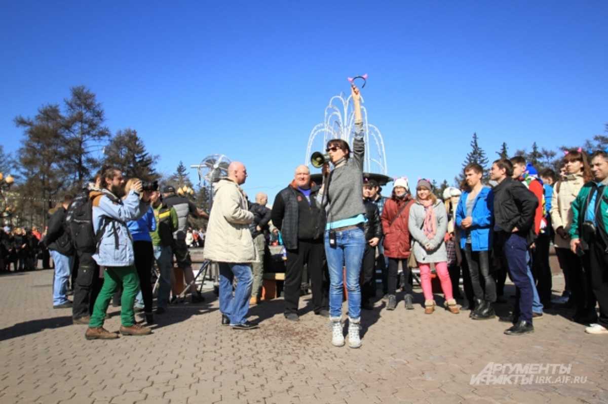 В этот день здесь собралось несколько сотен иркутян, которые были одеты в зимние куртки и шапки, ведь по сценарию снимали предновогодние дни.