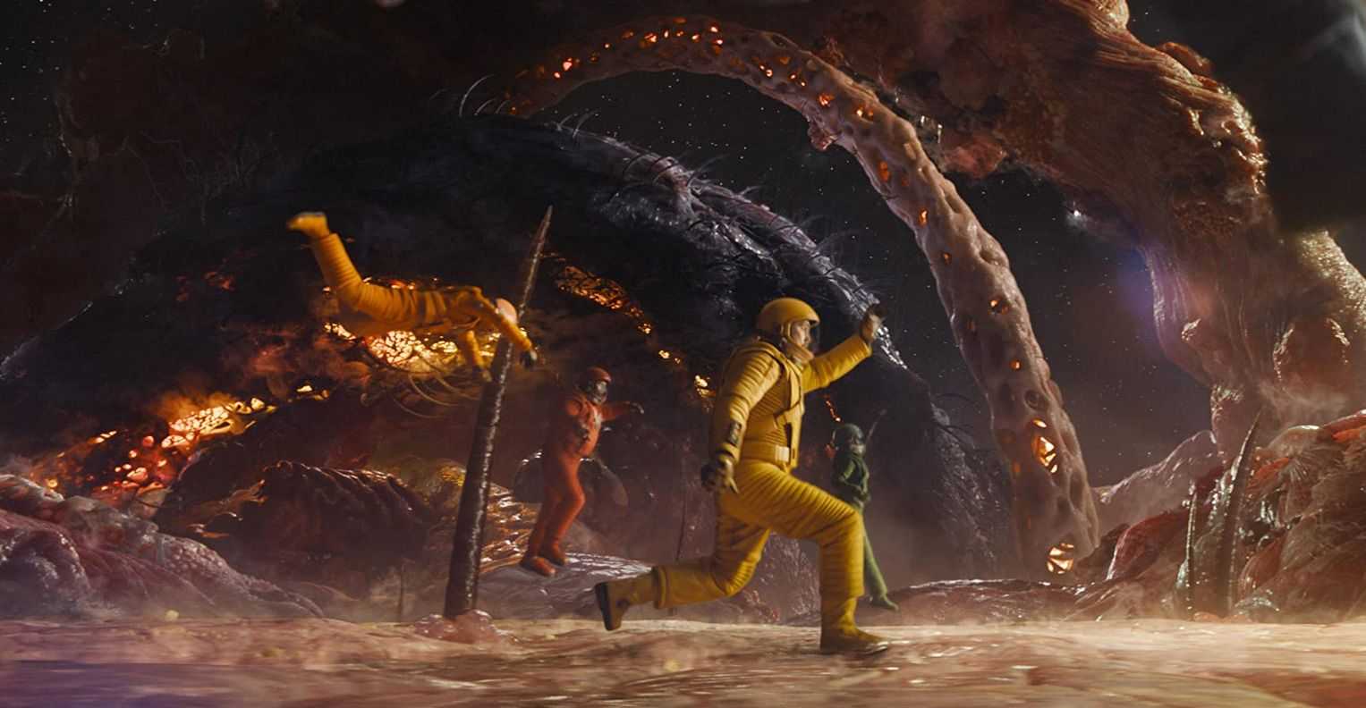 Кажется, что у Ганна был вообще безлимит. Любые сражения, будь то космические или камерные на кораблях и земле, смотрятся фантастически. Здесь, пожалуй, лучшая хореография в серии. Многие битвы визуально богаты и невероятно динамичны, иногда я даже будто сам чувствовал, как мне попадают по лицу.