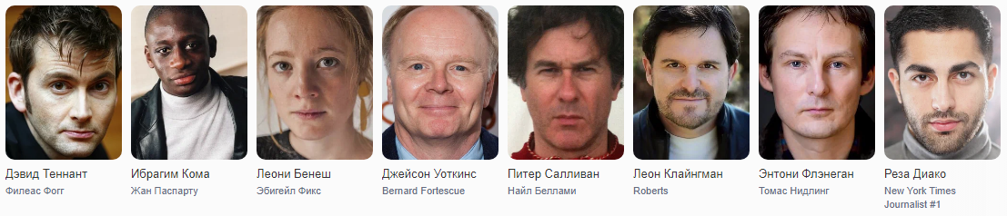 На главную роль английского джентльмена Филеаса Фогга, отправившегося в кругосветное путешествие, создатели пригласили шотландского актера Дэвида Джона Теннанта. Его спутницу – юную Эбигейл Фикс, мечтающую о карьере журналистки, замечательно сыграла немецкая актриса Леони Бенеш.
